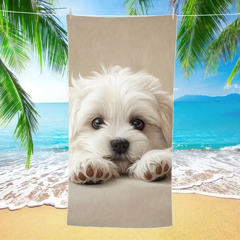 Asciugamano da spiaggia per cane disegnato- Asciugatura rapida, leggero, morbido e assorbente asciugamano da bagno in poliestere con design a cartoni animati per piscina, mare, nuoto, doccia e viaggi estivi, 280gsm, stile moderno