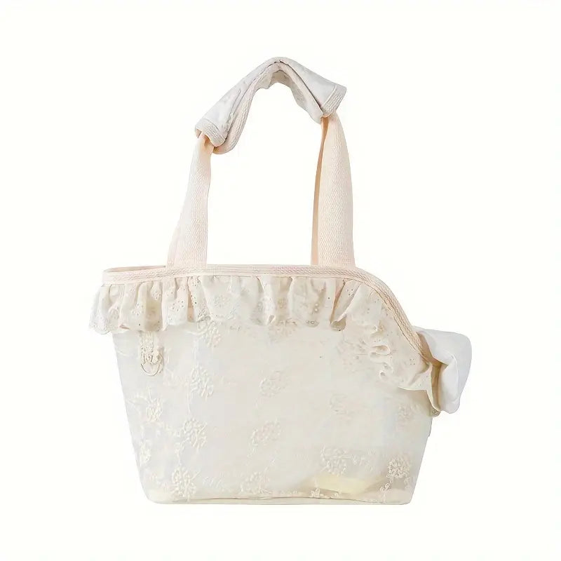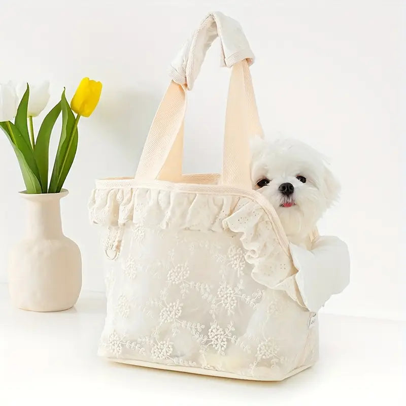 Zaino trasportino in lino - Design in pizzo traspirante portatile per cani e gatti di piccola taglia, borsa a tracolla con chiusura a scatto e opzione a mano
