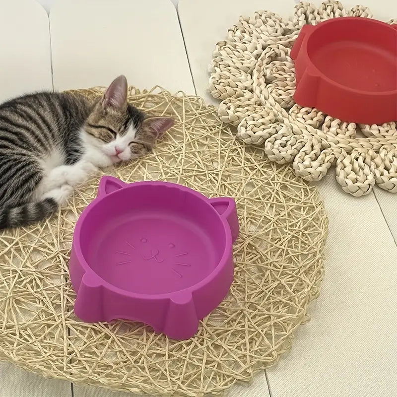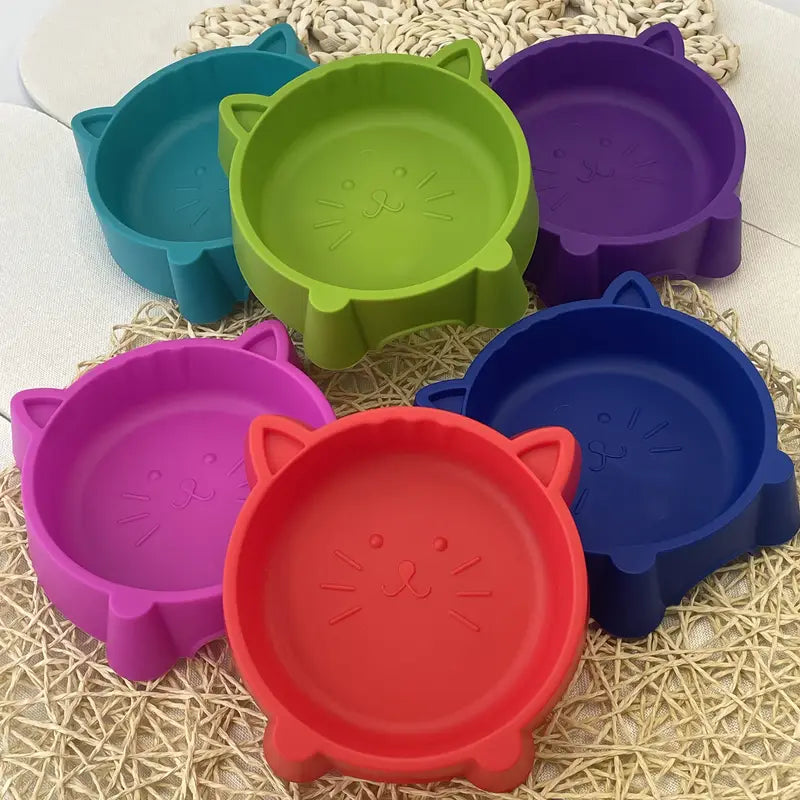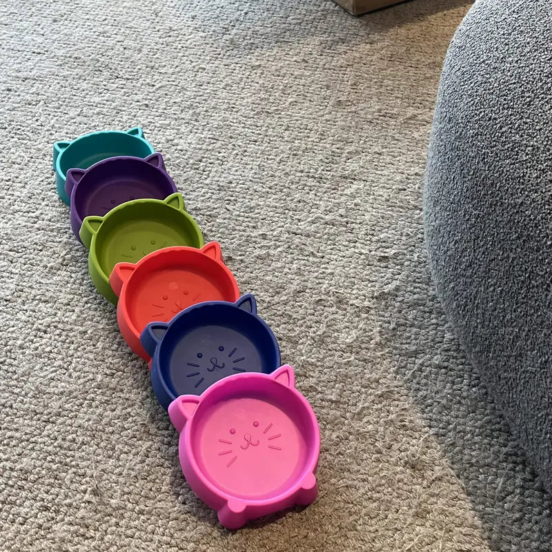 Ciotole colorate per gatti - plastica resistente, facili da pulire, piccoli piatti per cibo e acqua per animali domestici con design giocoso del viso di un gatto - Perfette per gatti da interno/esterno e feste di compleanno per cuccioli, colore assortito a random