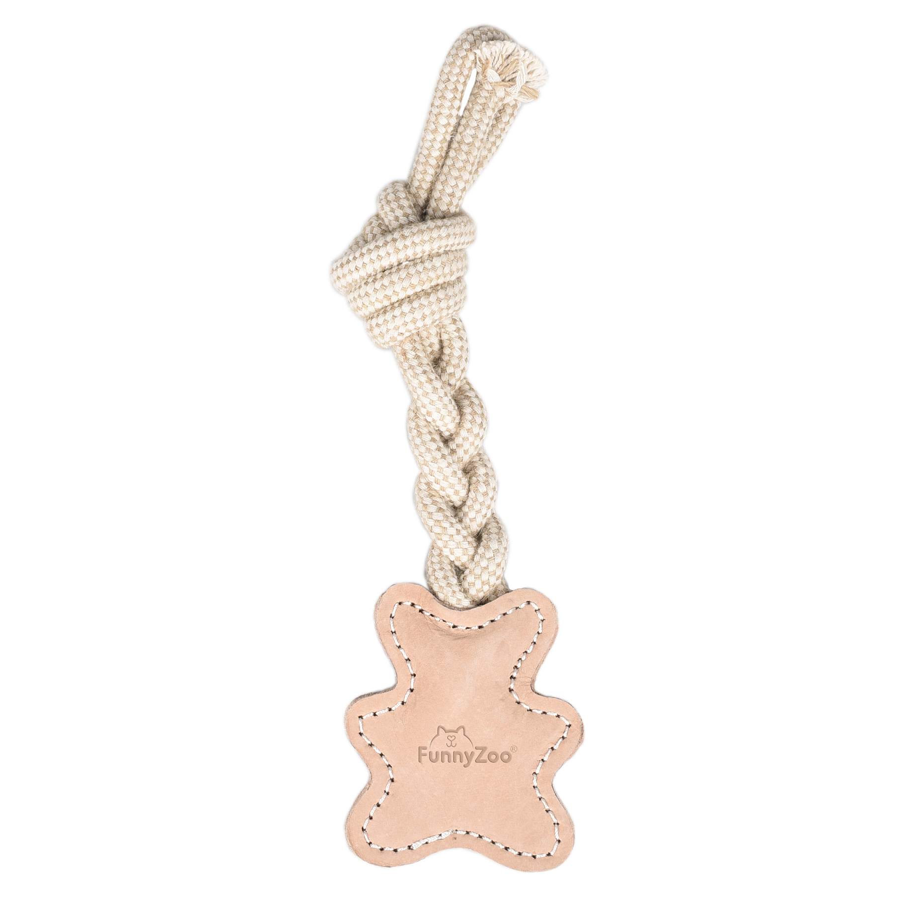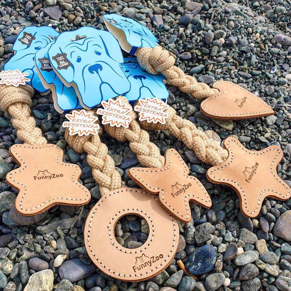 Gioco naturale per cani di cuoio e corda di cotone e juta