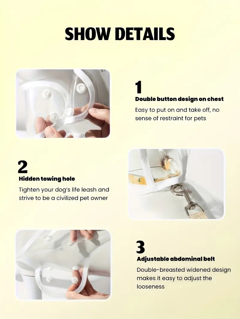 🌈 Design Trasparente: Elegante e minimal, lascia intravedere il manto del cane e si abbina a qualsiasi accessorio.