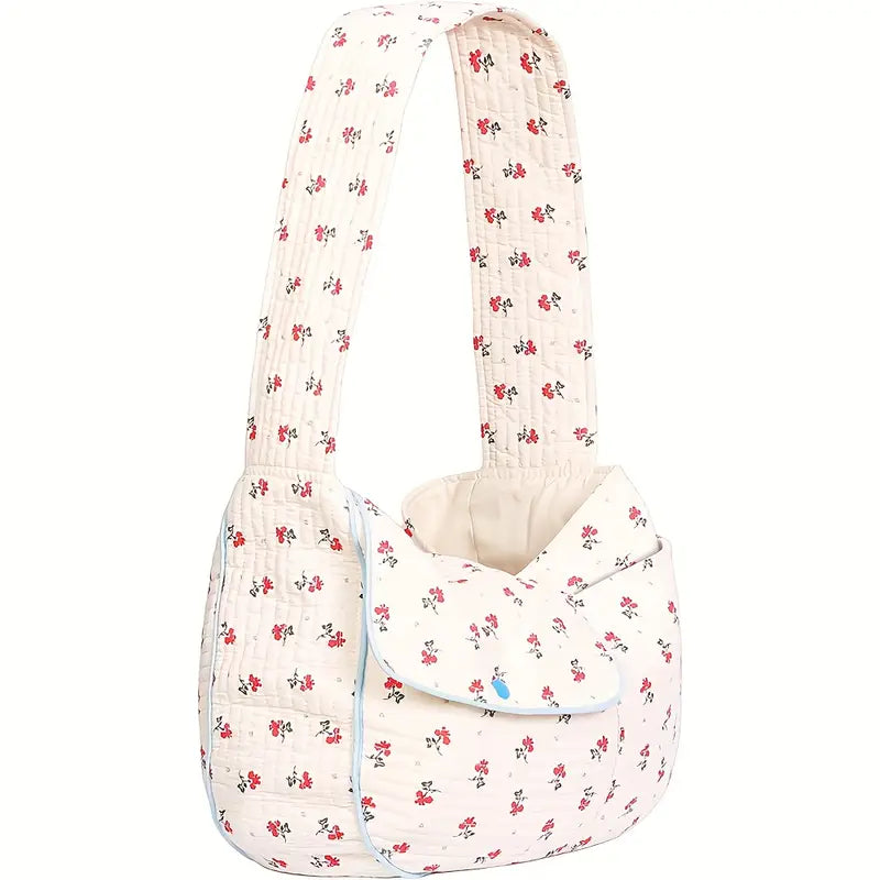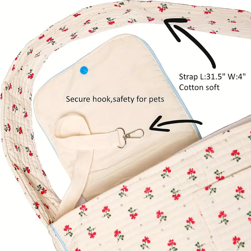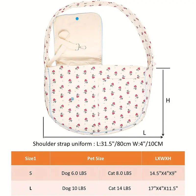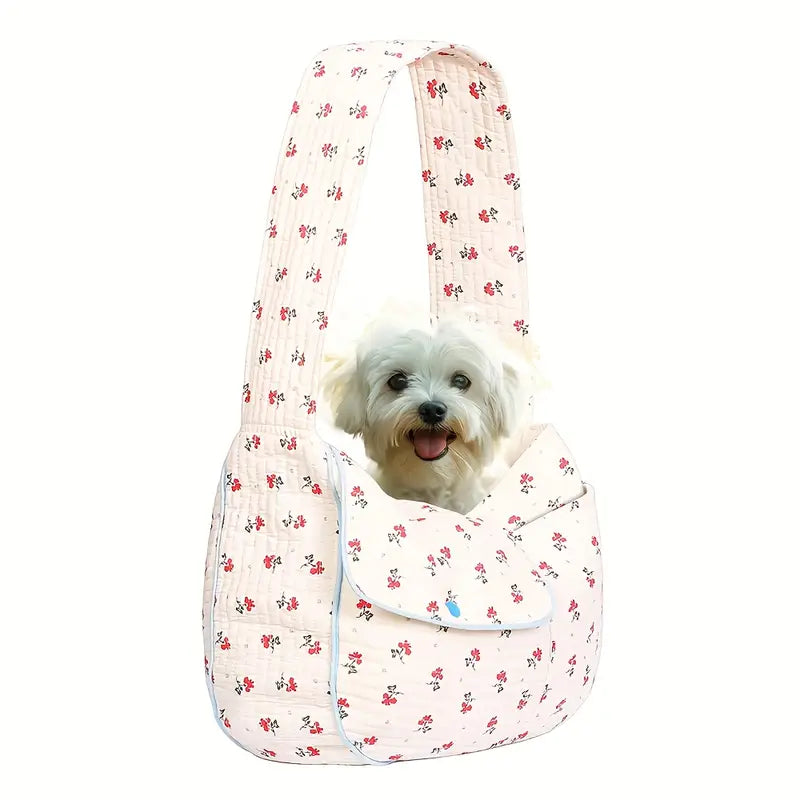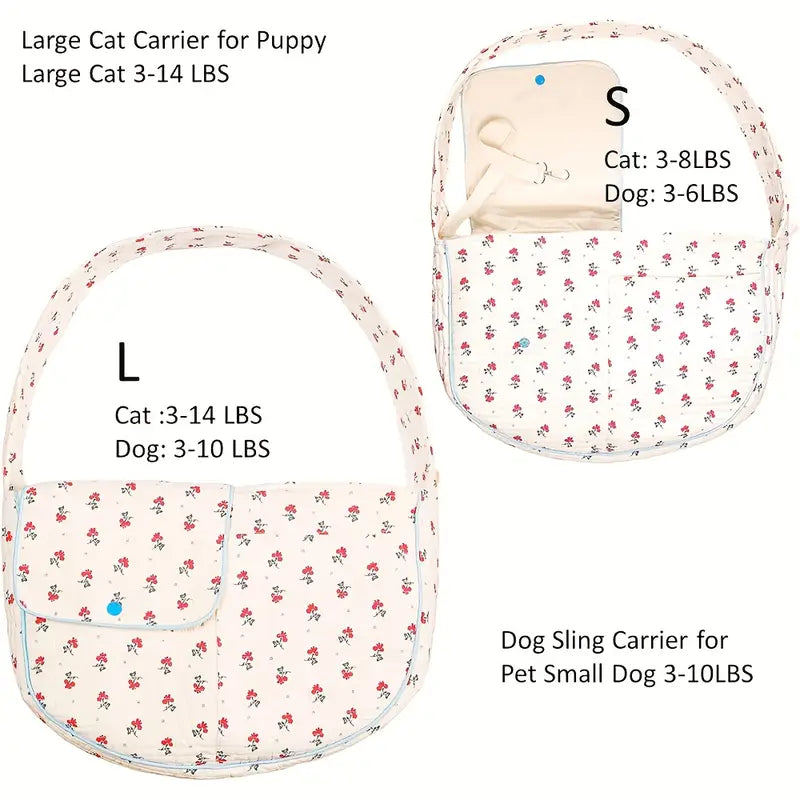Carinissimo zaino a tracolla floreale per animali domestici come gatti e cani, perfetto per viaggiare. Morbido e confortevole.