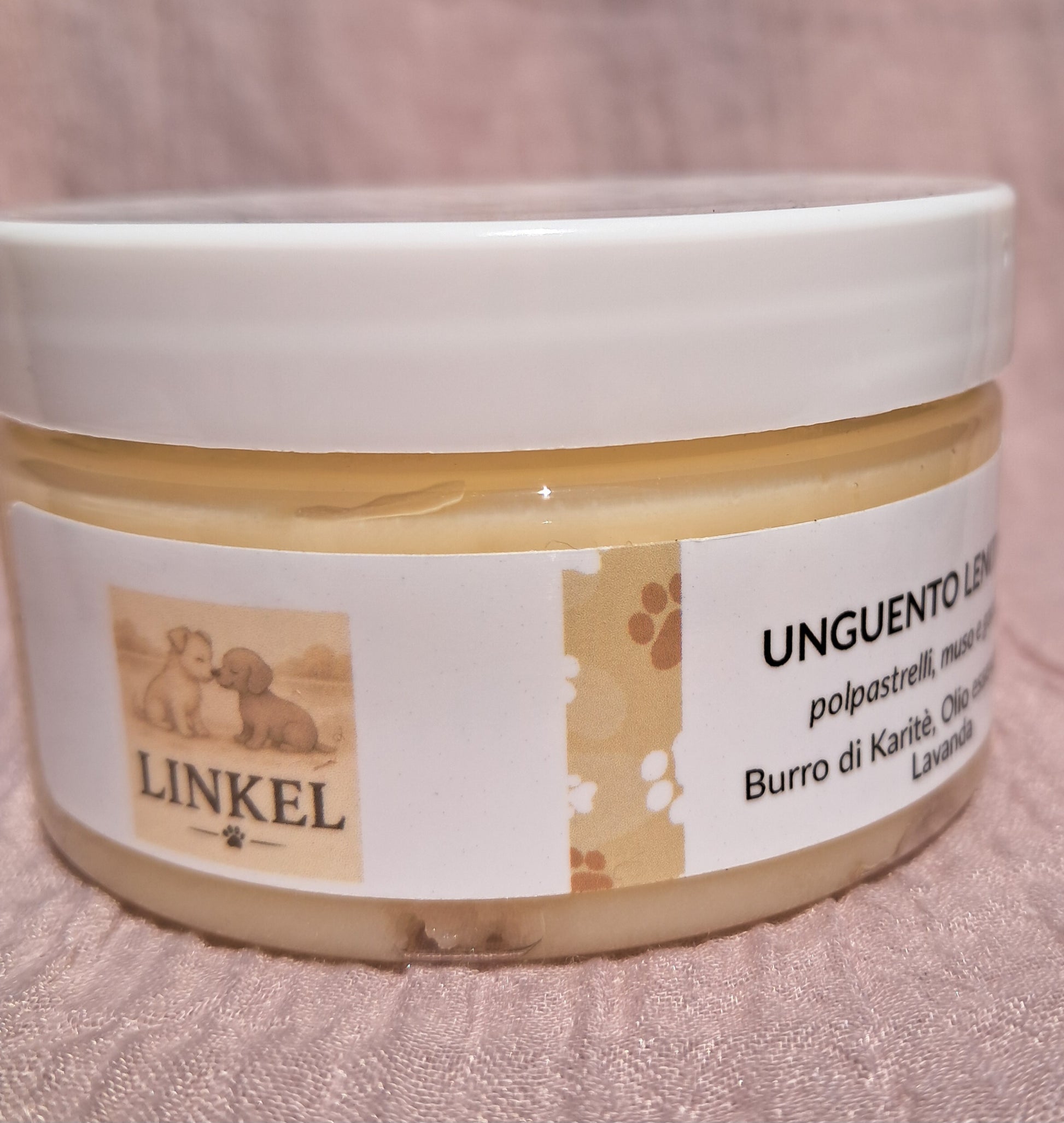 Applica l'unguento delicatamente su zampe, naso o altre aree sensibili. Massaggia fino a completare l'assorbimento. Evita l'uso su ferite aperte o sanguinanti.